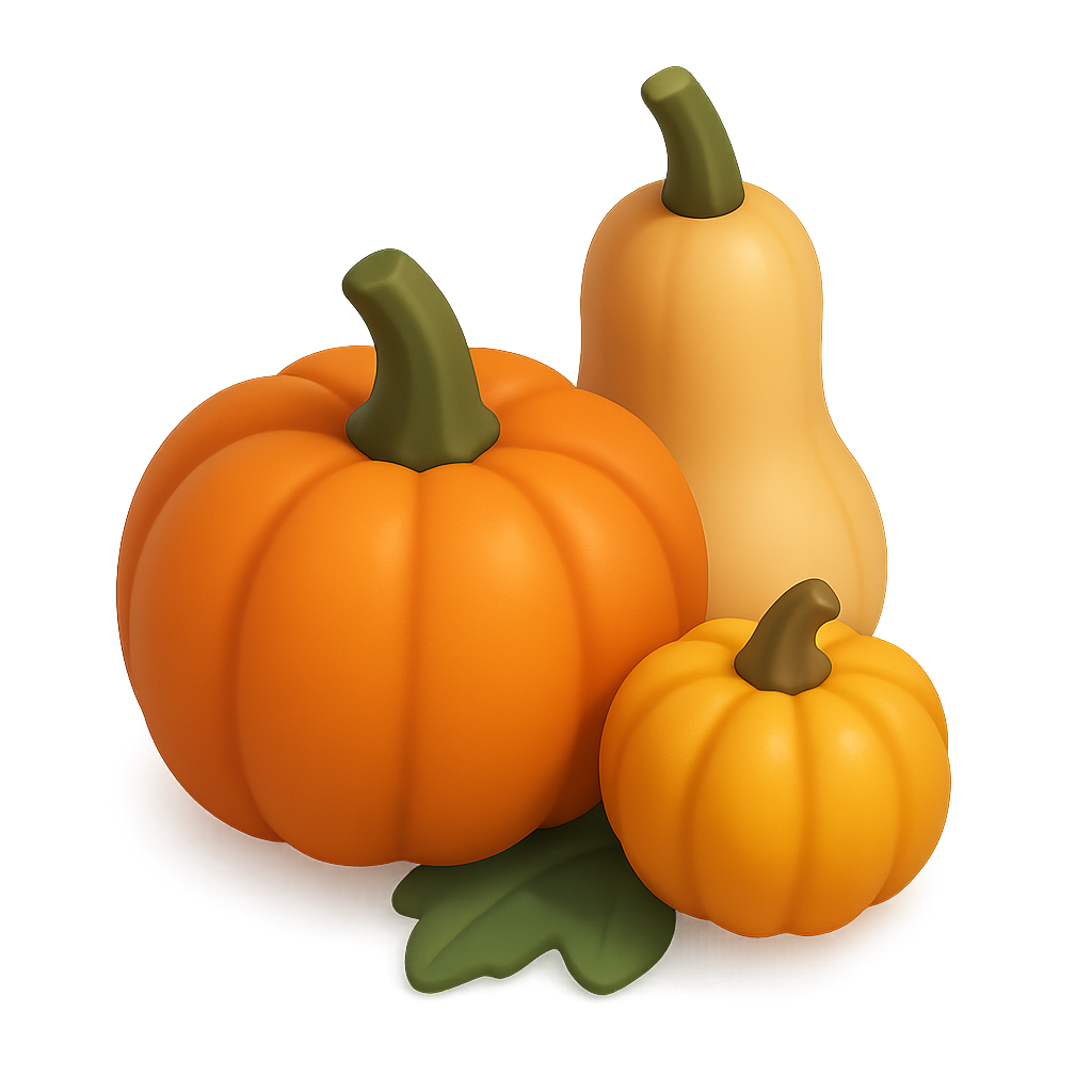 3D Illustration of Autumn Squash Harvest with Isometric Design