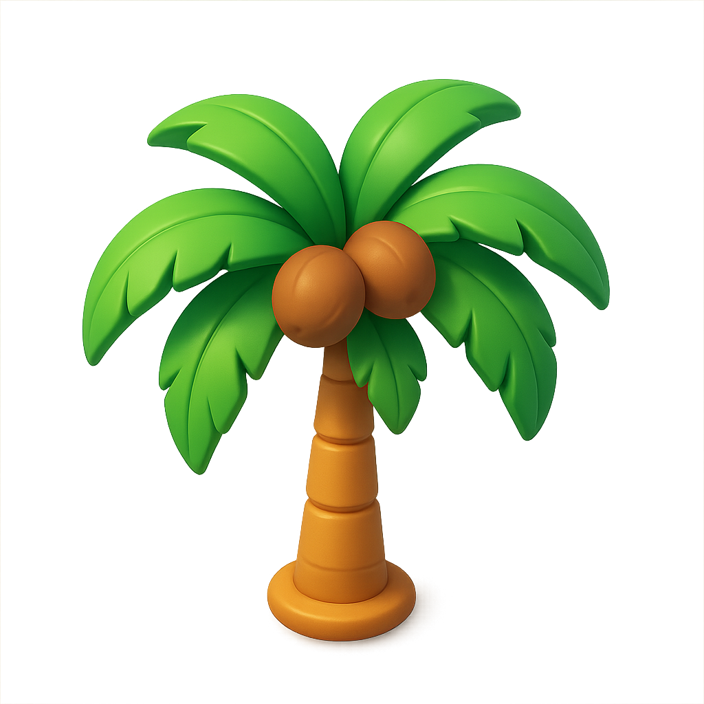 3D Coconut Palm Icon with Vibrant Colors and Depth