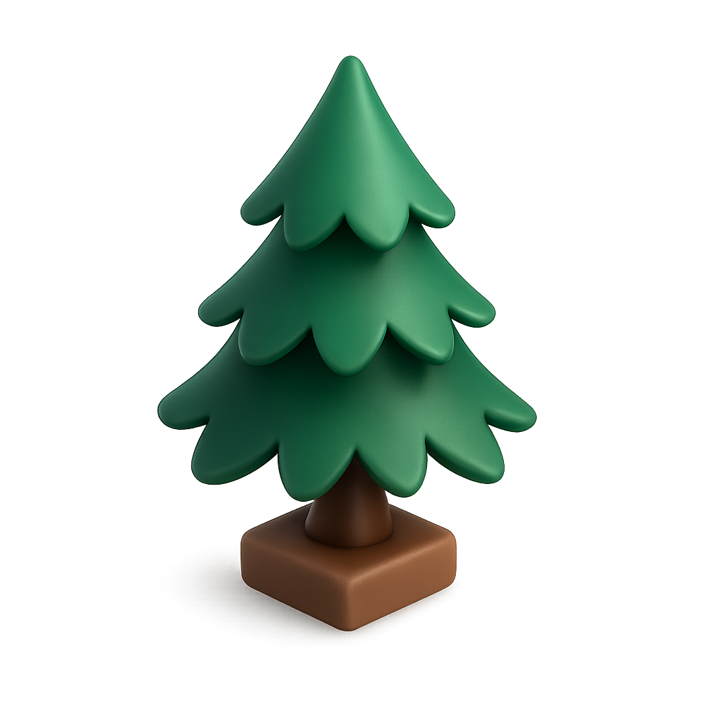 Stylized 3D Hemlock Tree Icon with Isometric Design