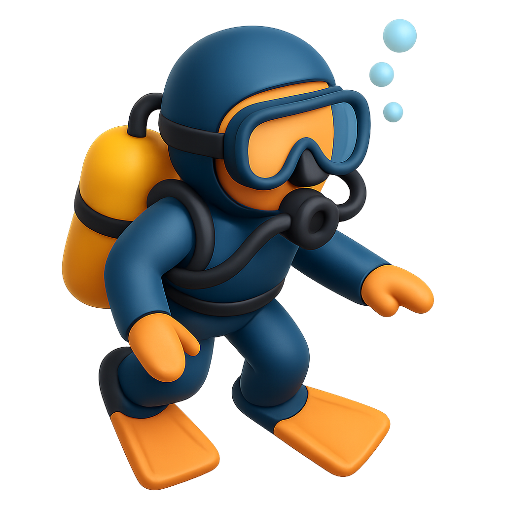 3D Scuba Diver Icon with Volumetric Feel