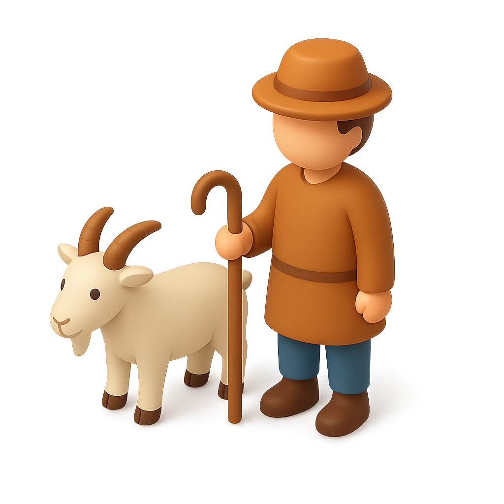 3D Goatherd Icon with Goat in Isometric View