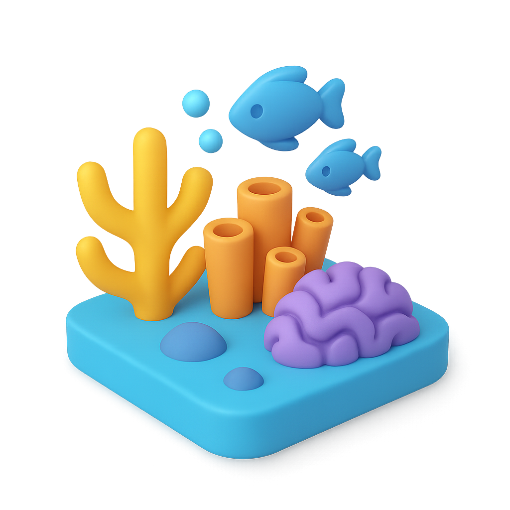 Colorful 3D Reef Icon with Coral and Sea Elements