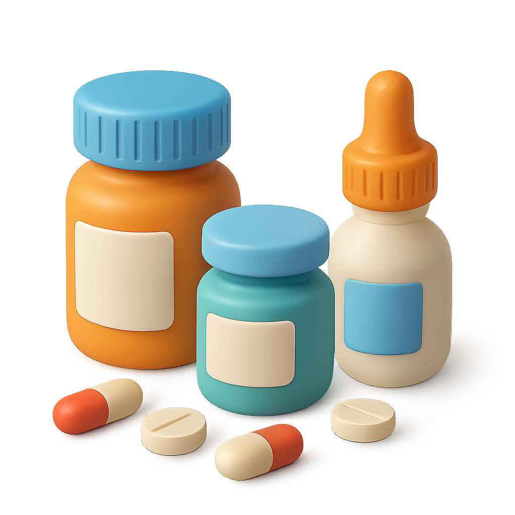 Colorful 3D Medicine Bottles and Capsules Icon