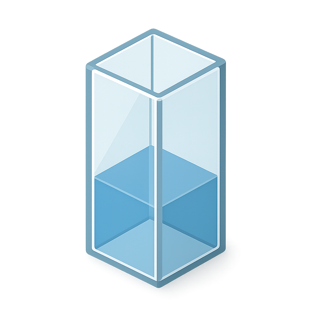 Stylized 3D Cuvette Icon for Spectrophotometry