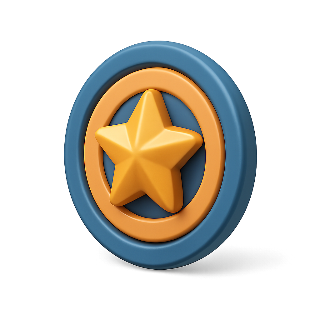 3D Star Badge Icon with Volumetric Design