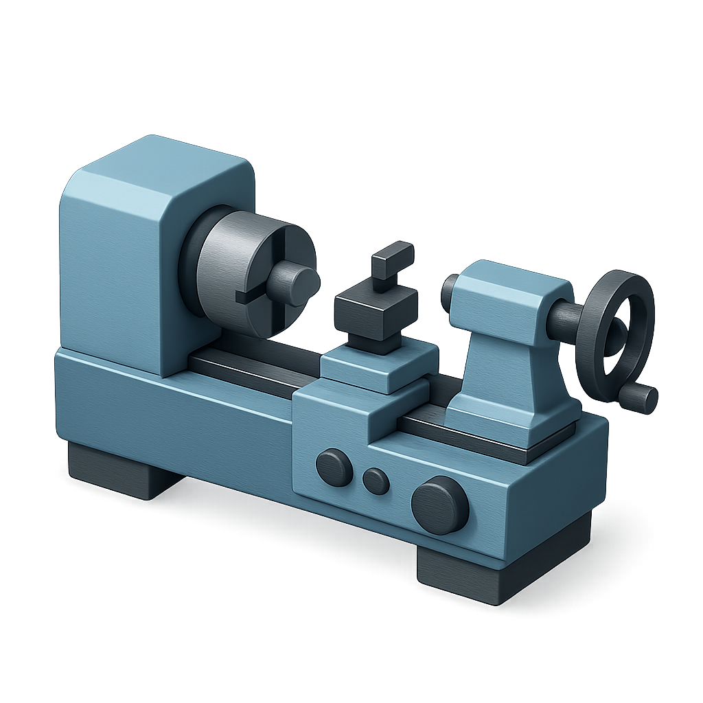 Stylized 3D Lathe Icon with Spindle in Isometric View