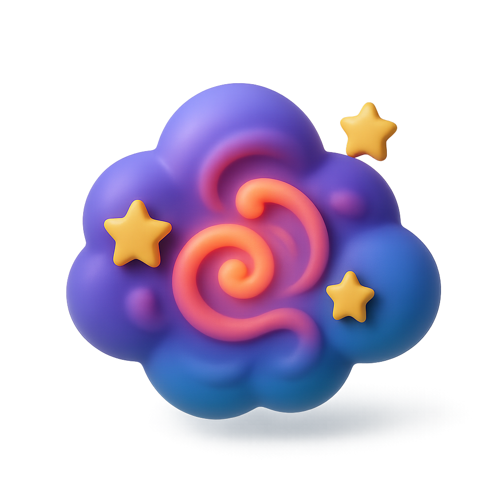 /Collection: /by davooda/Type: PNG/A vibrant 3D nebula cloud formation featuring swirling patterns in purple and pink, adorned with yellow stars. The design is isometric and has a transparent background.