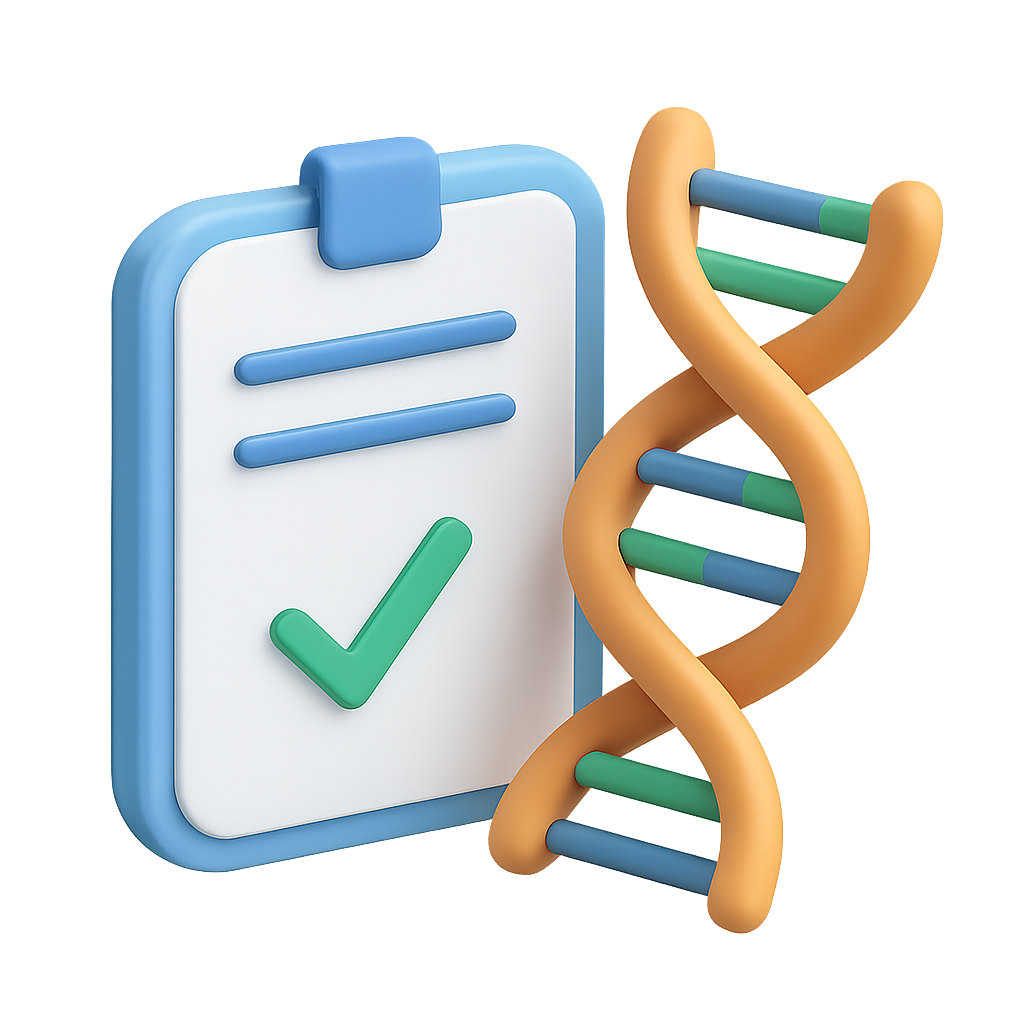Stylized 3D DNA and Clipboard Icon for Genetic Testing