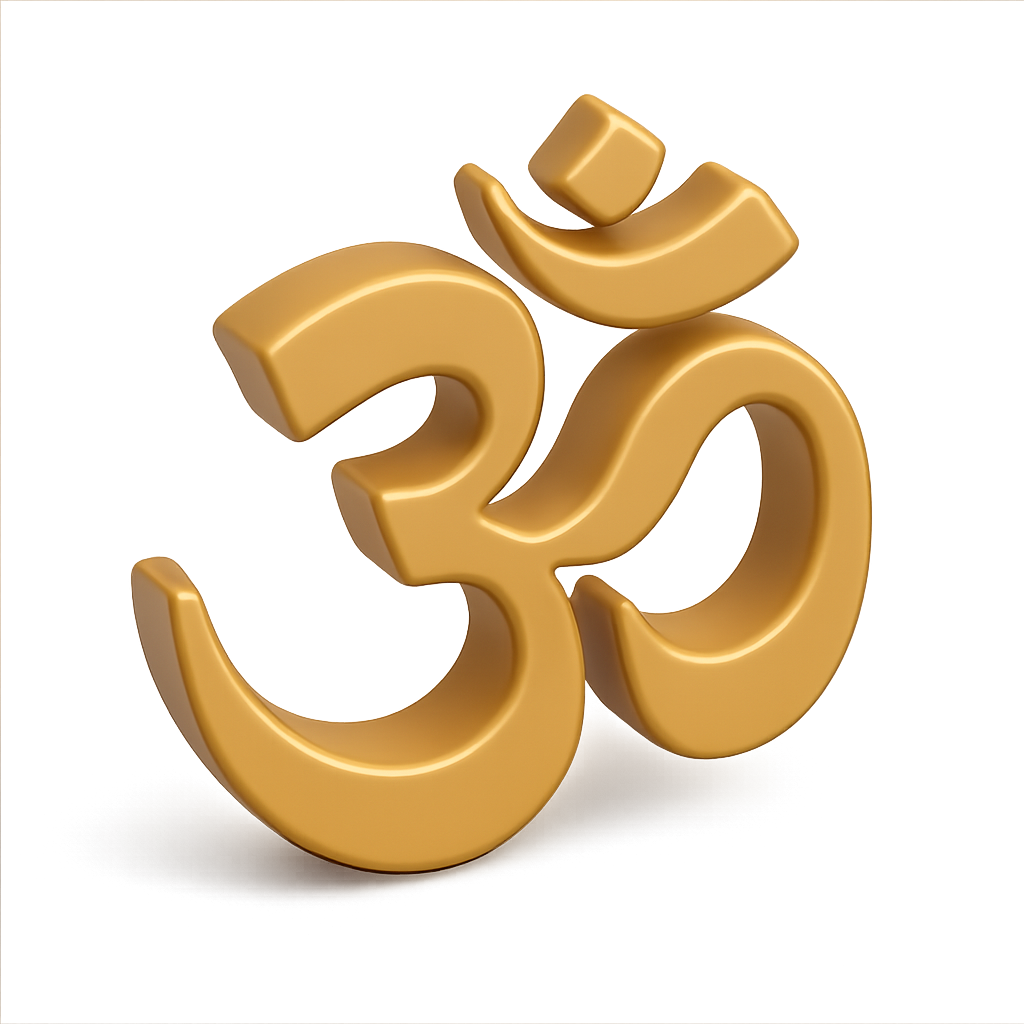 A beautifully rendered 3D representation of the Om symbol, showcasing a glossy golden finish with a volumetric appearance, set against a soft gradient background.