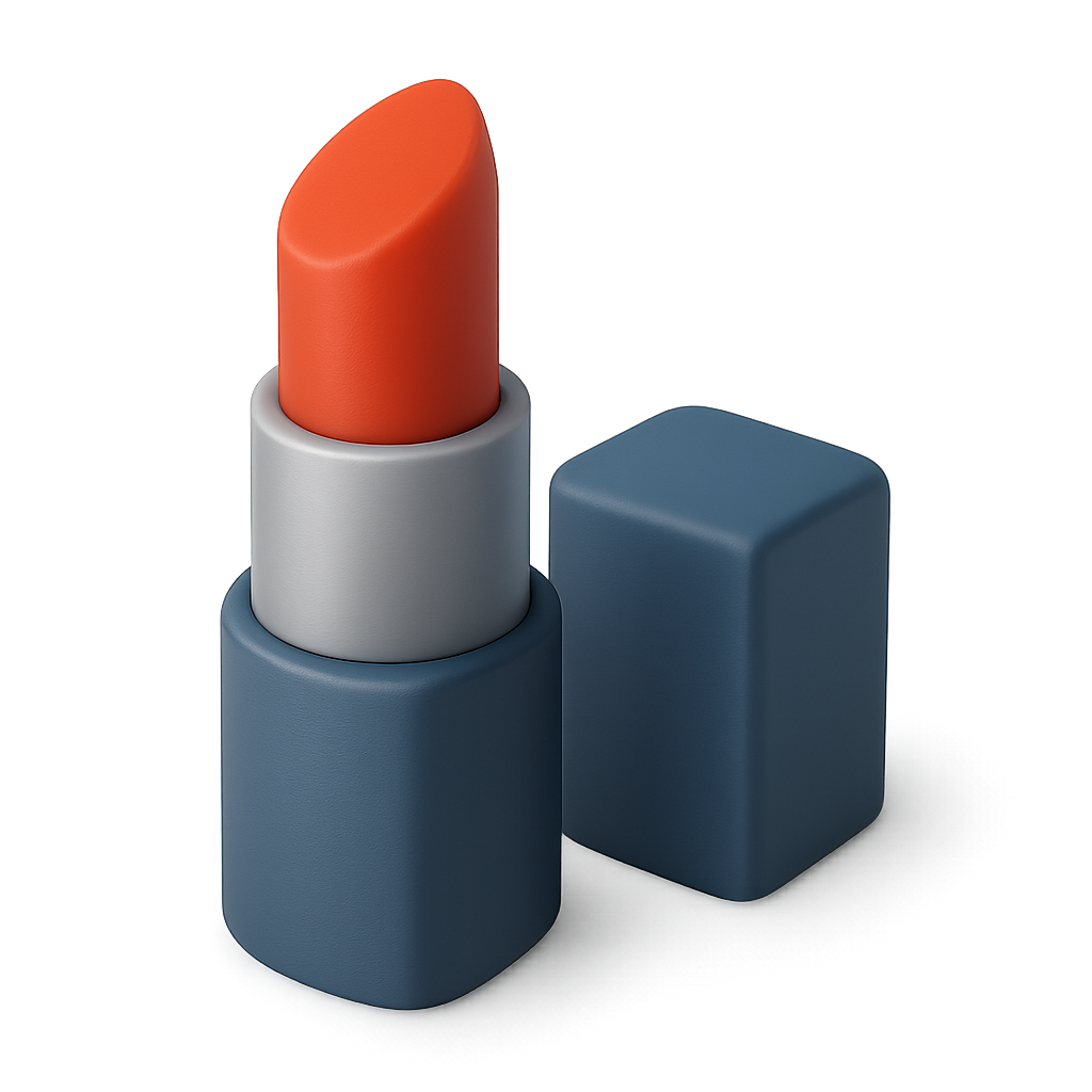 Stylish 3D Lipstick Icon with Cap in Isometric View