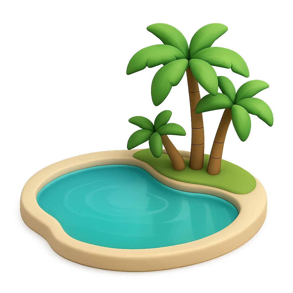 Stylized 3D Oasis Icon with Palm Trees and Water