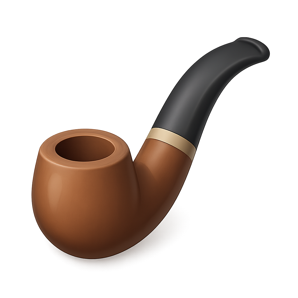 A visually appealing 3D icon of a pipe, featuring a glossy finish and a transparent background. The design showcases a brown body and a sleek black stem.