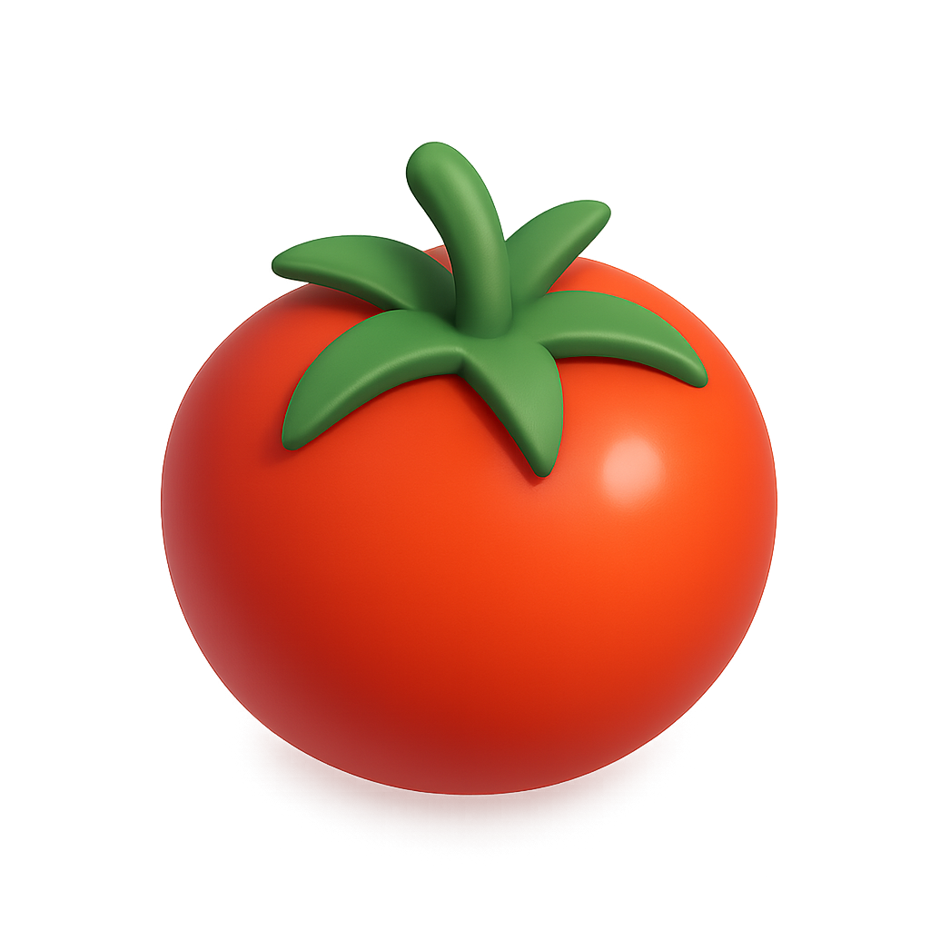 Stylish 3D Tomato Icon with Green Leaves
