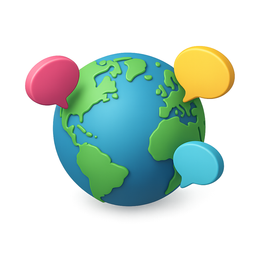 3D Globe Icon with Language Bubbles for Communication