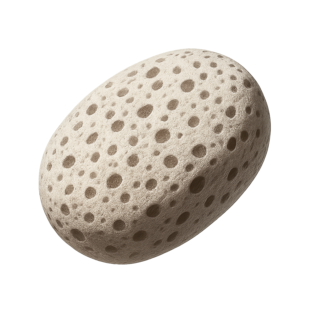 A three-dimensional icon of a pumice stone, depicted from a three-quarter view. The design features a textured surface with visible pores, set against a soft gradient background.