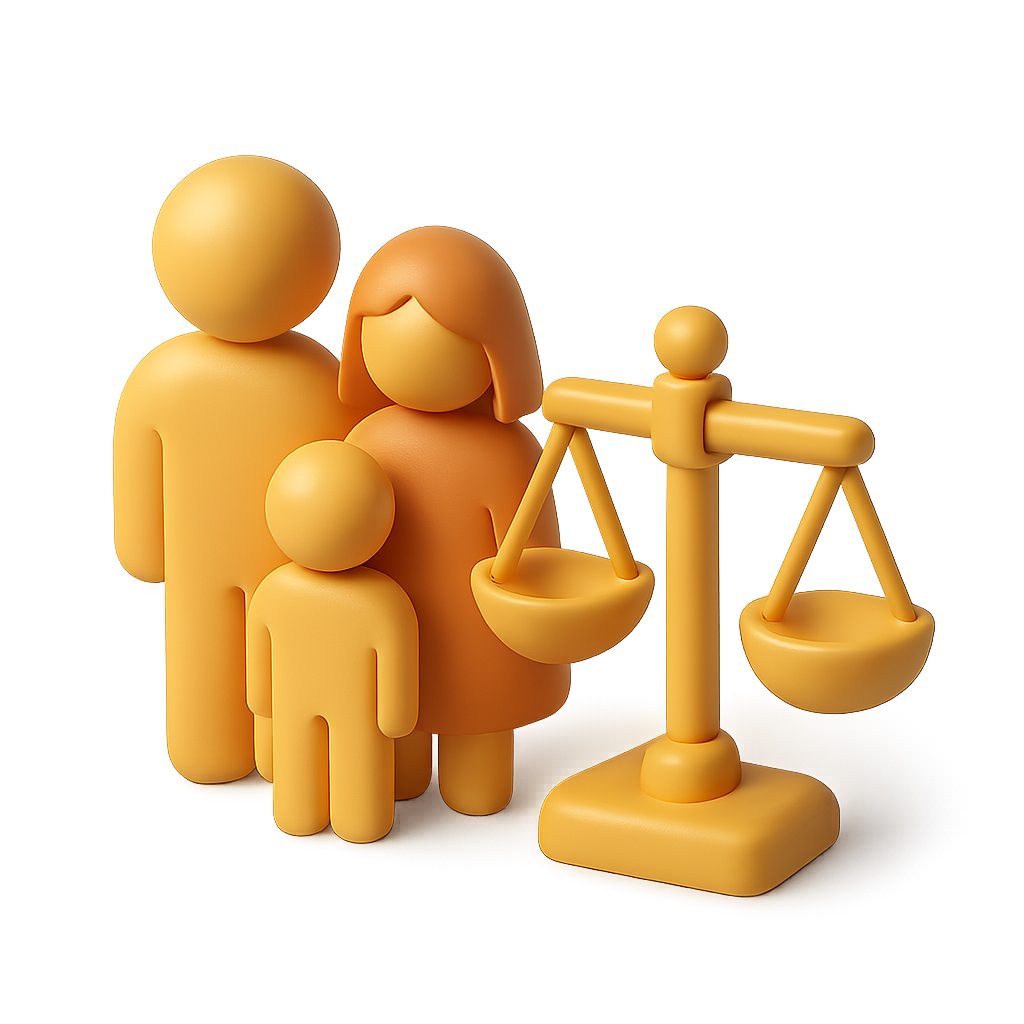 3D Family Icon with Scales of Justice in Isometric View