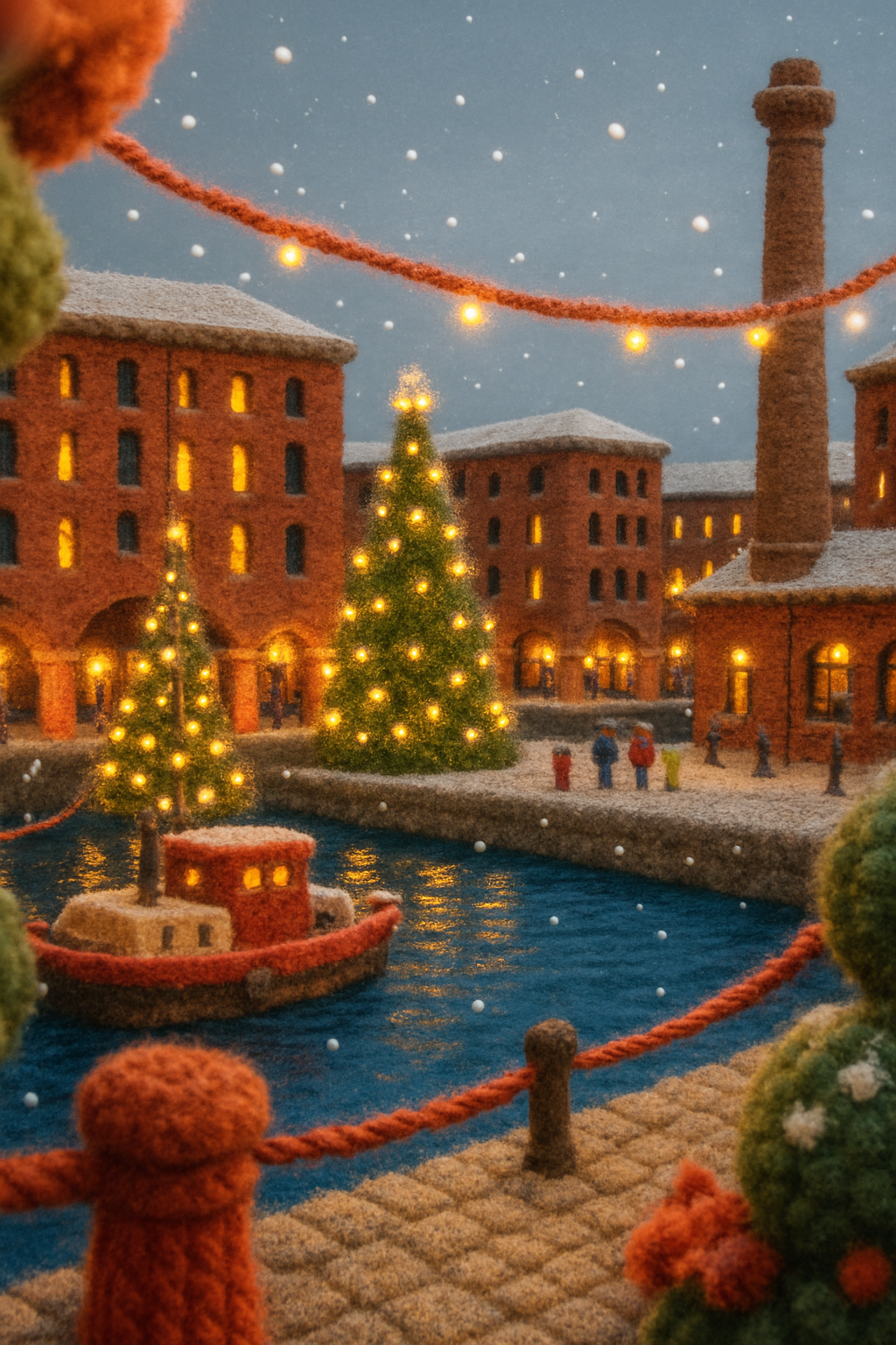 Knitted Albert Dock in Snow: A Festive 3D Scene
