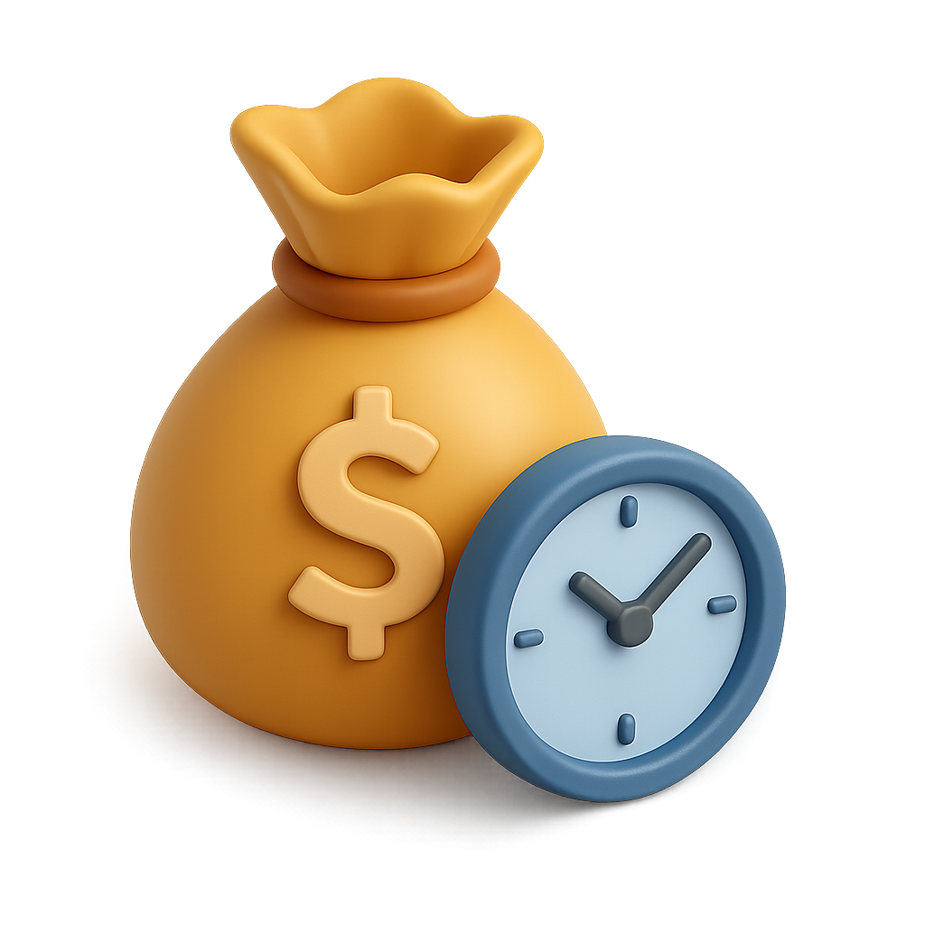 3D Icon of Money Bag and Clock Symbolizing Wealth and Time