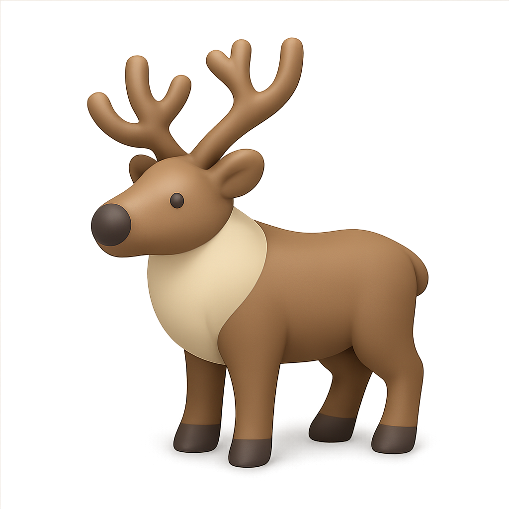 A cute, stylized 3D caribou icon presented in a three-quarter view. The design features smooth surfaces, rounded shapes, and a soft color palette, set against a blurred background.