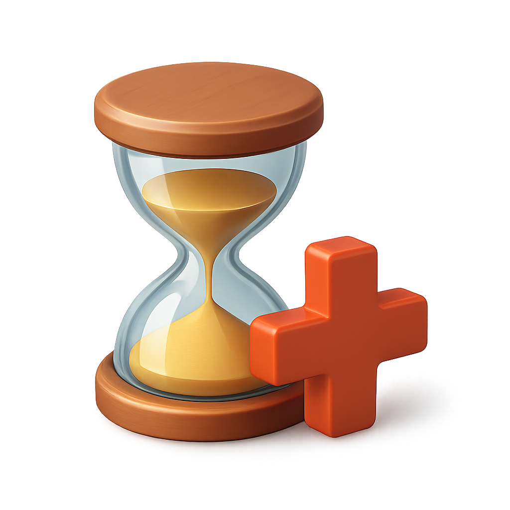 /Collection: /by davooda/Type: PNG/A 3D hourglass featuring a transparent design with a golden sand interior, accompanied by a bright orange plus sign. The isometric view enhances the volumetric feel, set against a gradient background.