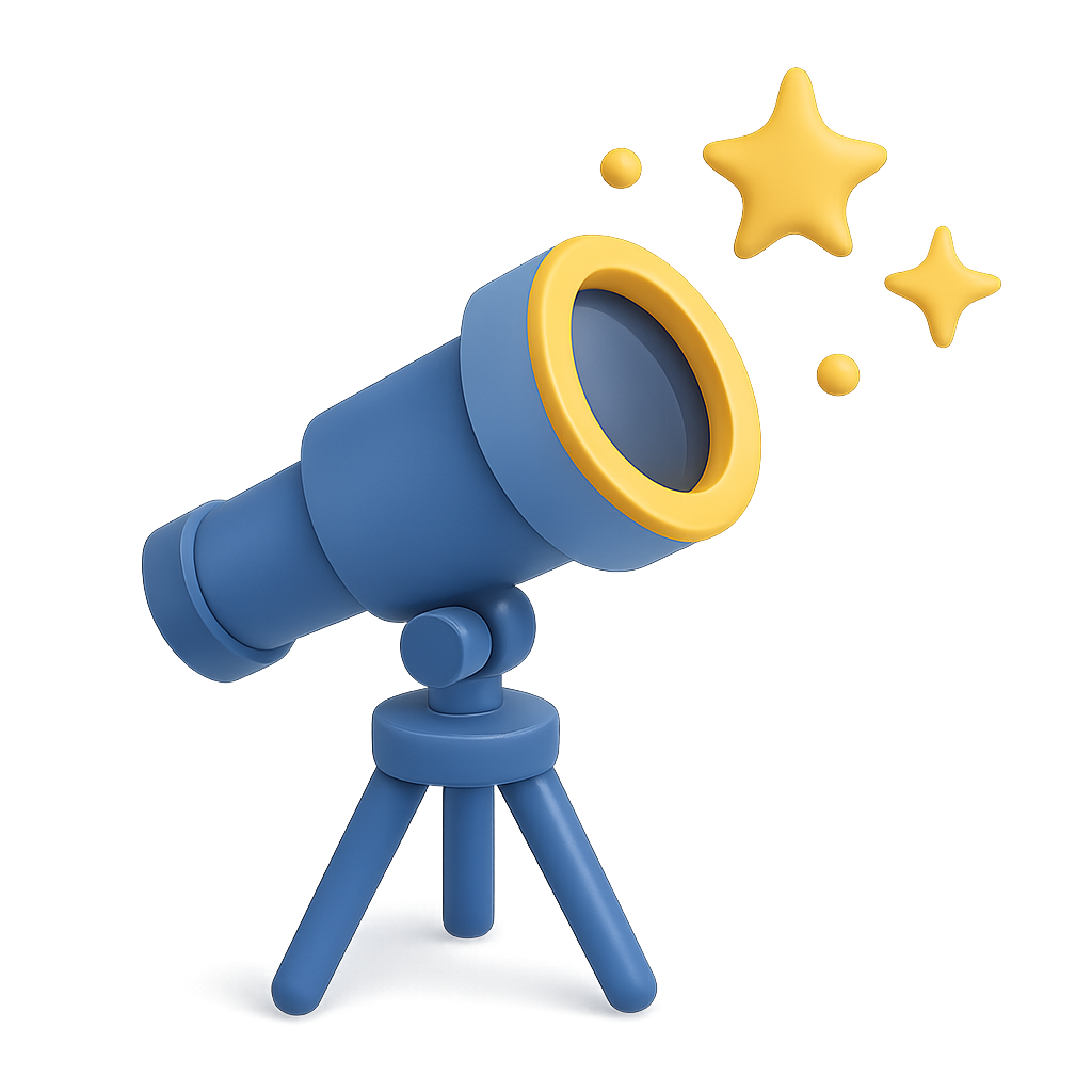Stylized 3D Telescope Icon with Stars and Glow Effect