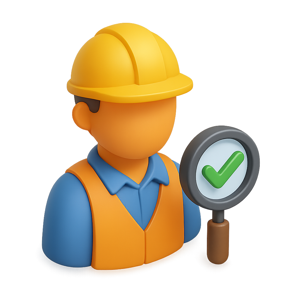 3D Quality Control Inspector Icon with Checkmark