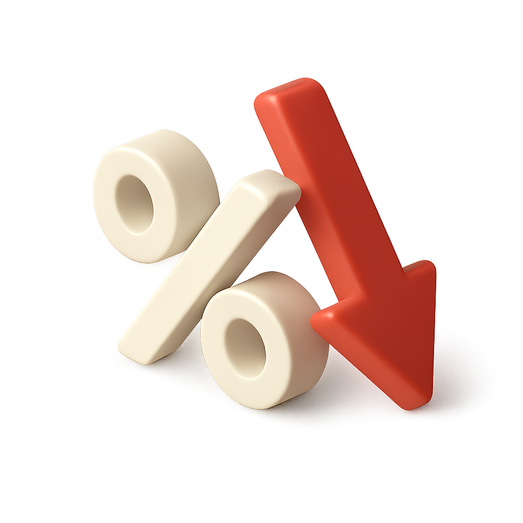 /Collection: /by davooda/Type: PNG/A 3D representation of a percentage symbol paired with a downward arrow, showcasing a clear indication of decrease. The design features a glossy finish and volumetric depth.