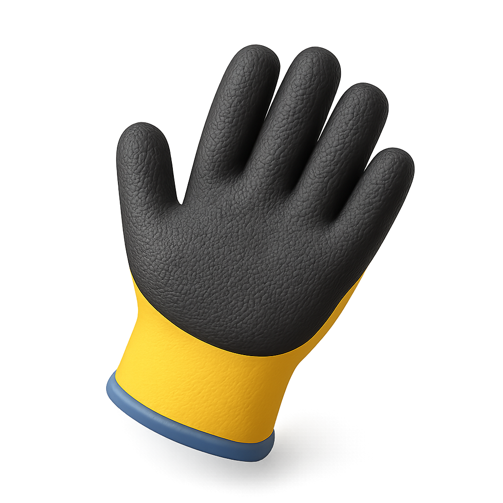 A visually appealing 3D icon of a rubber grip glove, featuring a black textured surface and a vibrant yellow wrist band, presented in an isometric view.