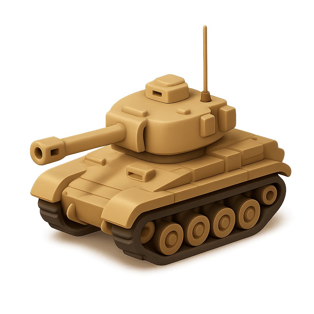 Stylized 3D Desert Tank Icon in Isometric View