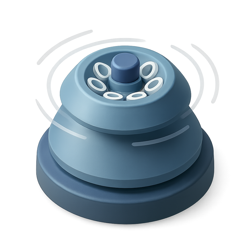 /Collection: /by davooda/Type: PNG/A stylized 3D icon of a centrifuge rotor, designed with a transparent background. The rotor appears to be spinning, showcasing a three-quarter view with a smooth, isometric and volumetric feel.