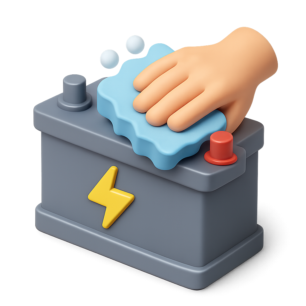 3D Icon of Hand Cleaning a Battery for Maintenance