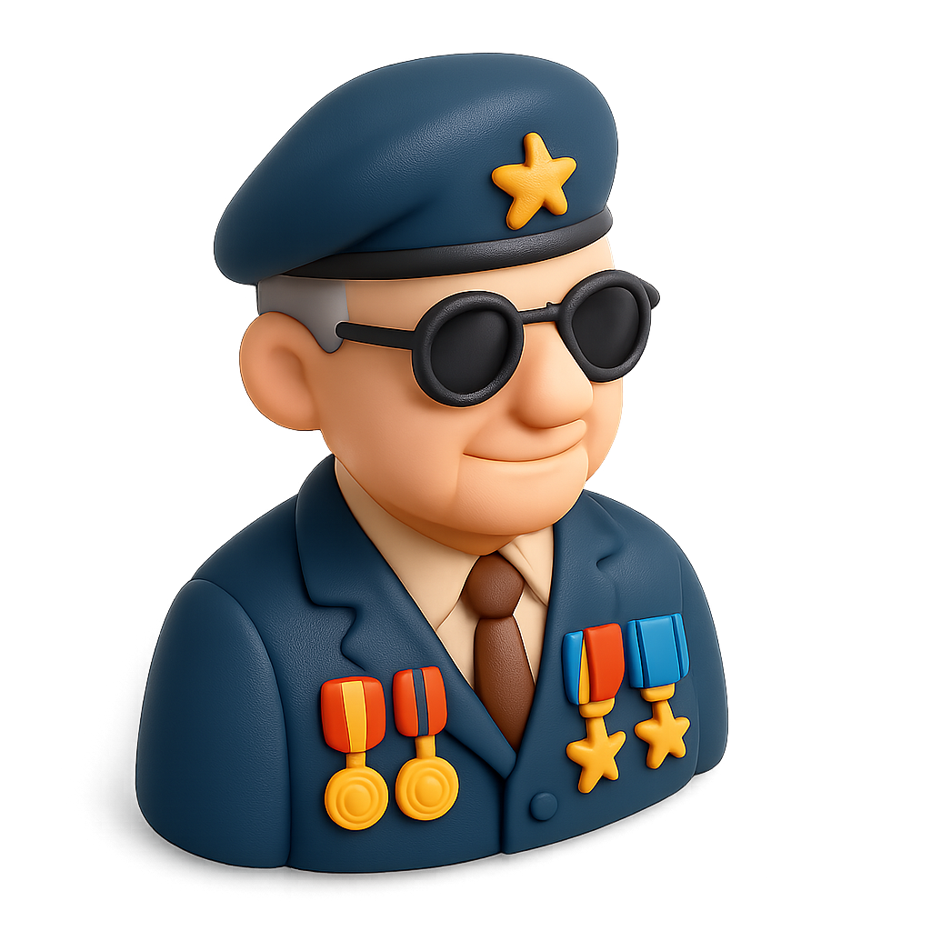 3D Veteran Icon with Medals and Sunglasses