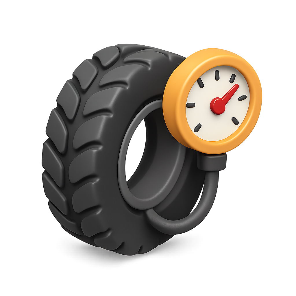 Stylized 3D Tire Icon with Air Gauge in Isometric View