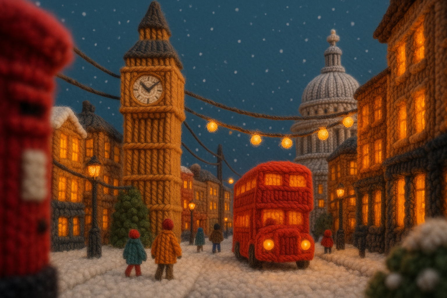 Enchanting Winter Scene of London with Knitted Details