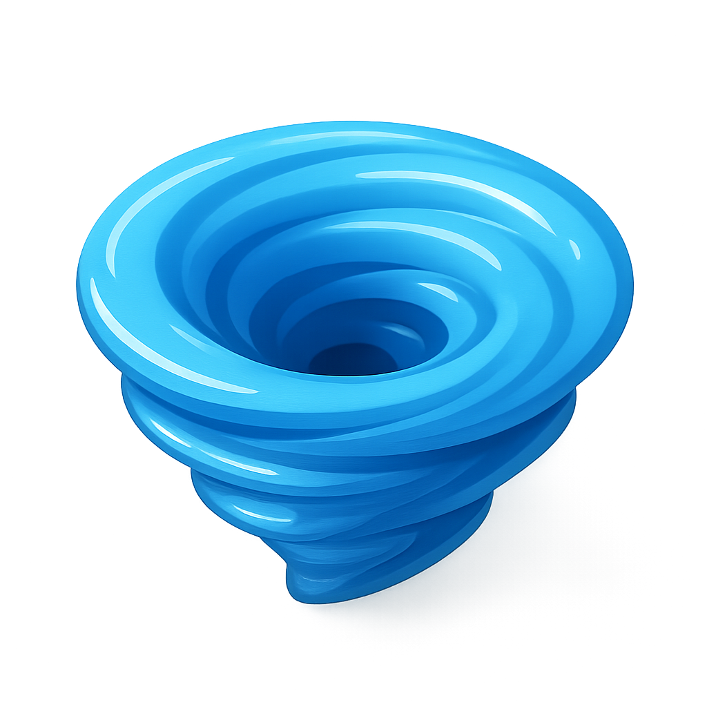 A stylized 3D icon depicting a whirlpool with a vibrant blue color, showcasing a smooth, glossy surface and swirling design. The icon is presented in a three-quarter view against a subtle background.