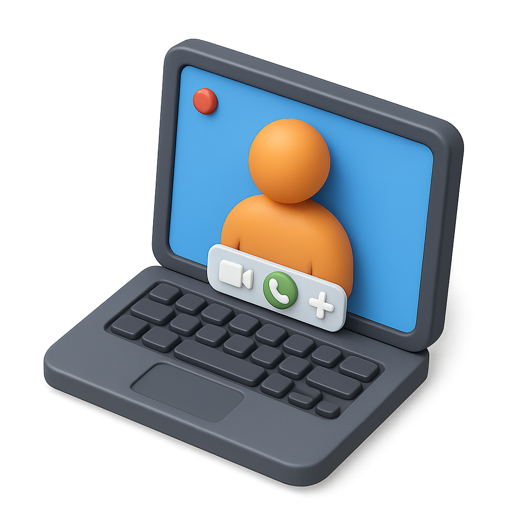 3D Video Call Icon Featuring Laptop and User