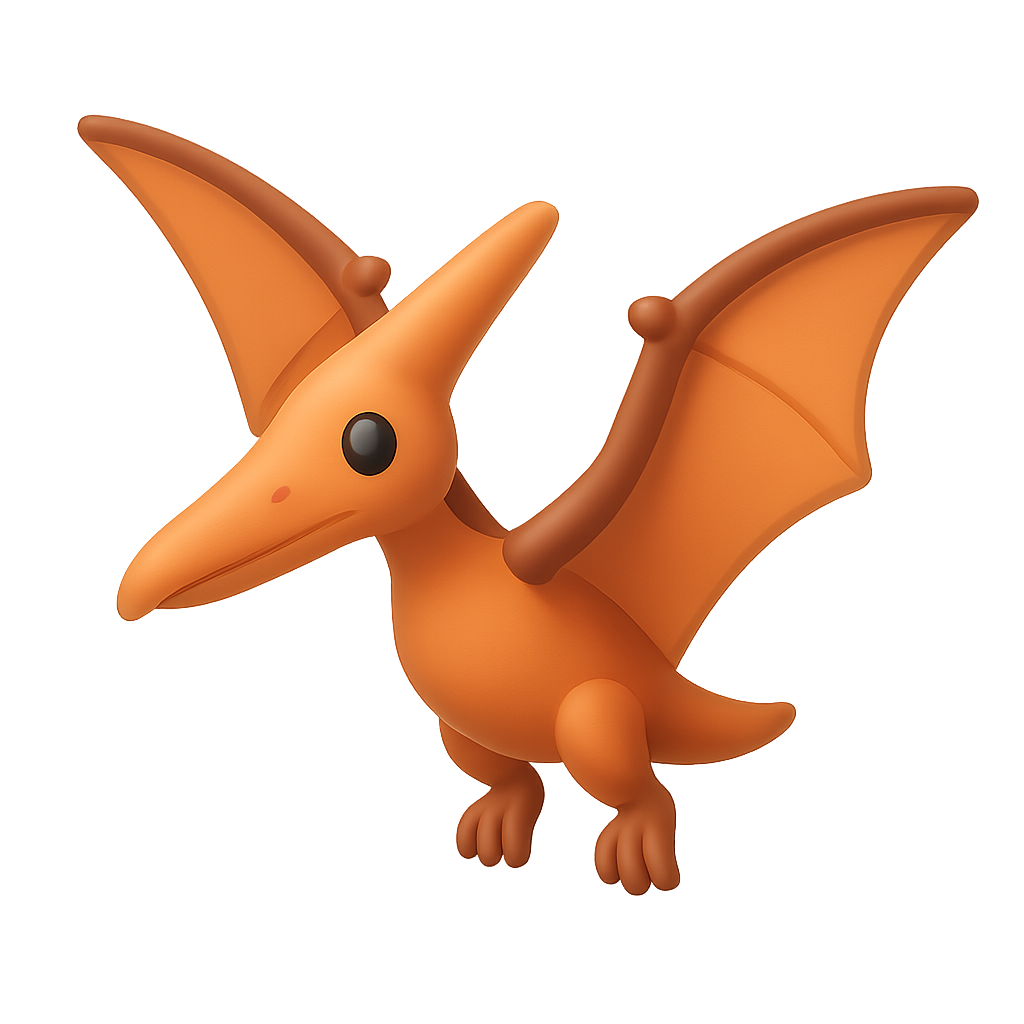 /Collection: /by davooda/Type: PNG/A vibrant 3D icon of a pterodactyl in flight, showcasing a three-quarter view with a smooth and rounded design. The orange color and playful features give it a friendly appearance, set against a soft gradient background.